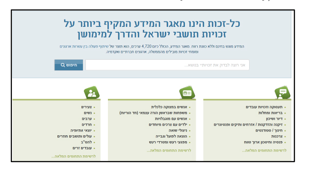 1. כל המידע, כל הזכויות ודרכי מימושן, בכל התחומים מוגש באתר אינטרנט אחד (כולל תמיכה בטלפונים חכמים)